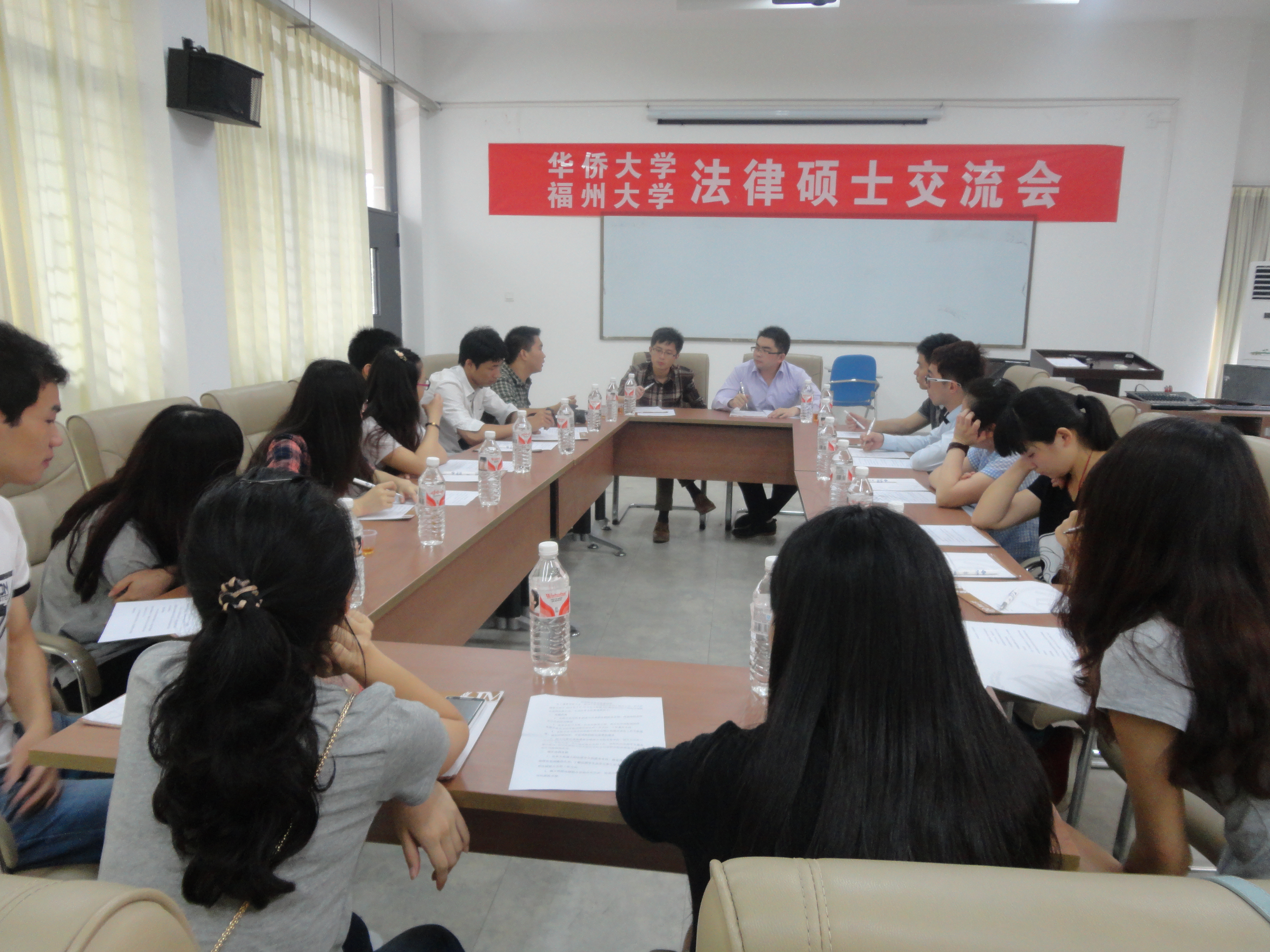 2014年5月24日午时1点左右,由华侨大学法硕联合会主办的“法律硕士交流会”在文种楼307室成功举行。此次交流会邀请到了福州大学法硕联合会的8名代表作为嘉宾,两地法硕联合会一起分享了他们平时的工作经验和生活感悟,以及对法律硕士的出路选择及未来发展方向等问题进行了深入交流。华大法硕联合会执行会长晋元胜和秘书处部长郭剑明带队与各部部长以及部门成员共22人热情接待了福州大学法硕联合会的执行会长林淞和部长代表林琳等一行8人。